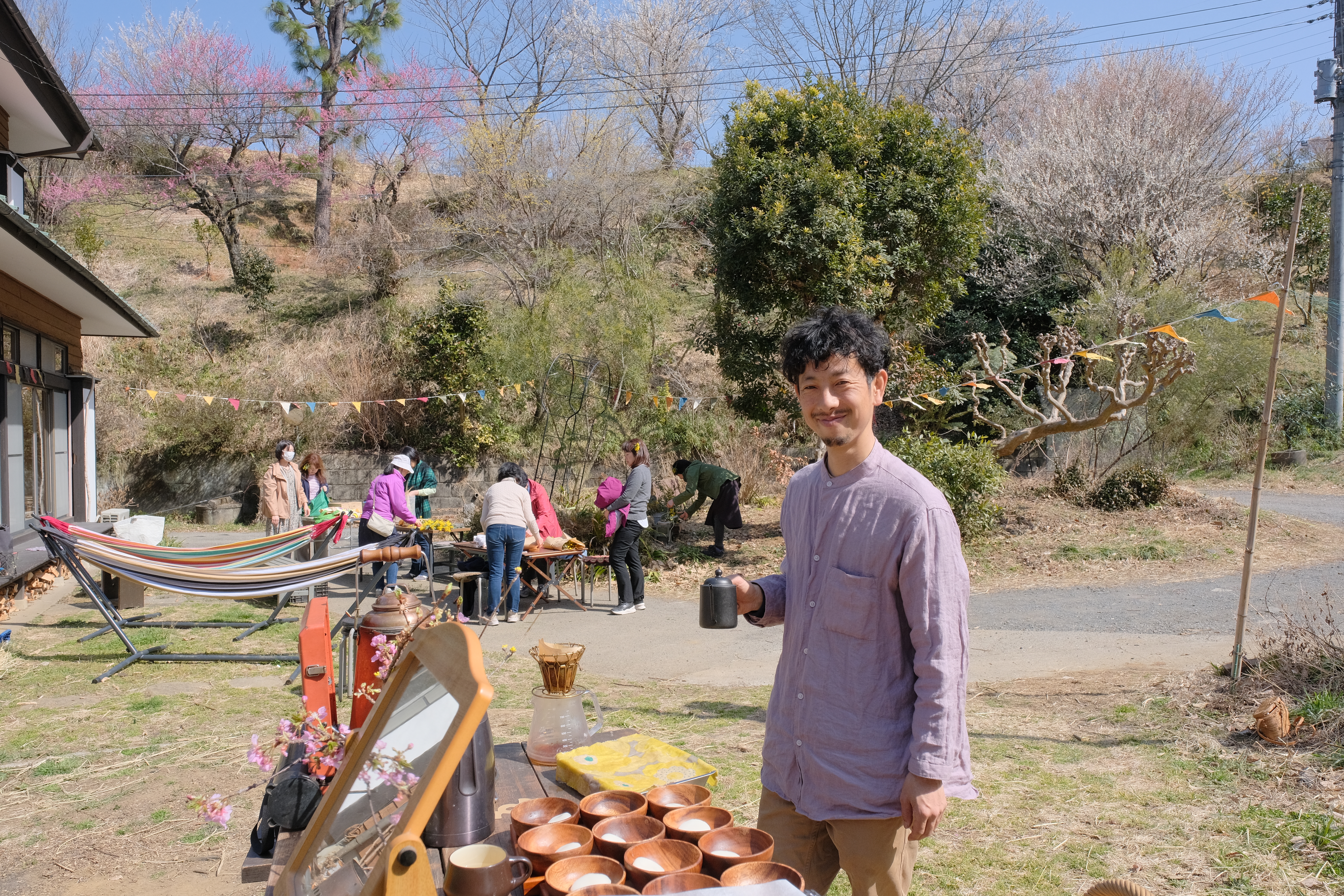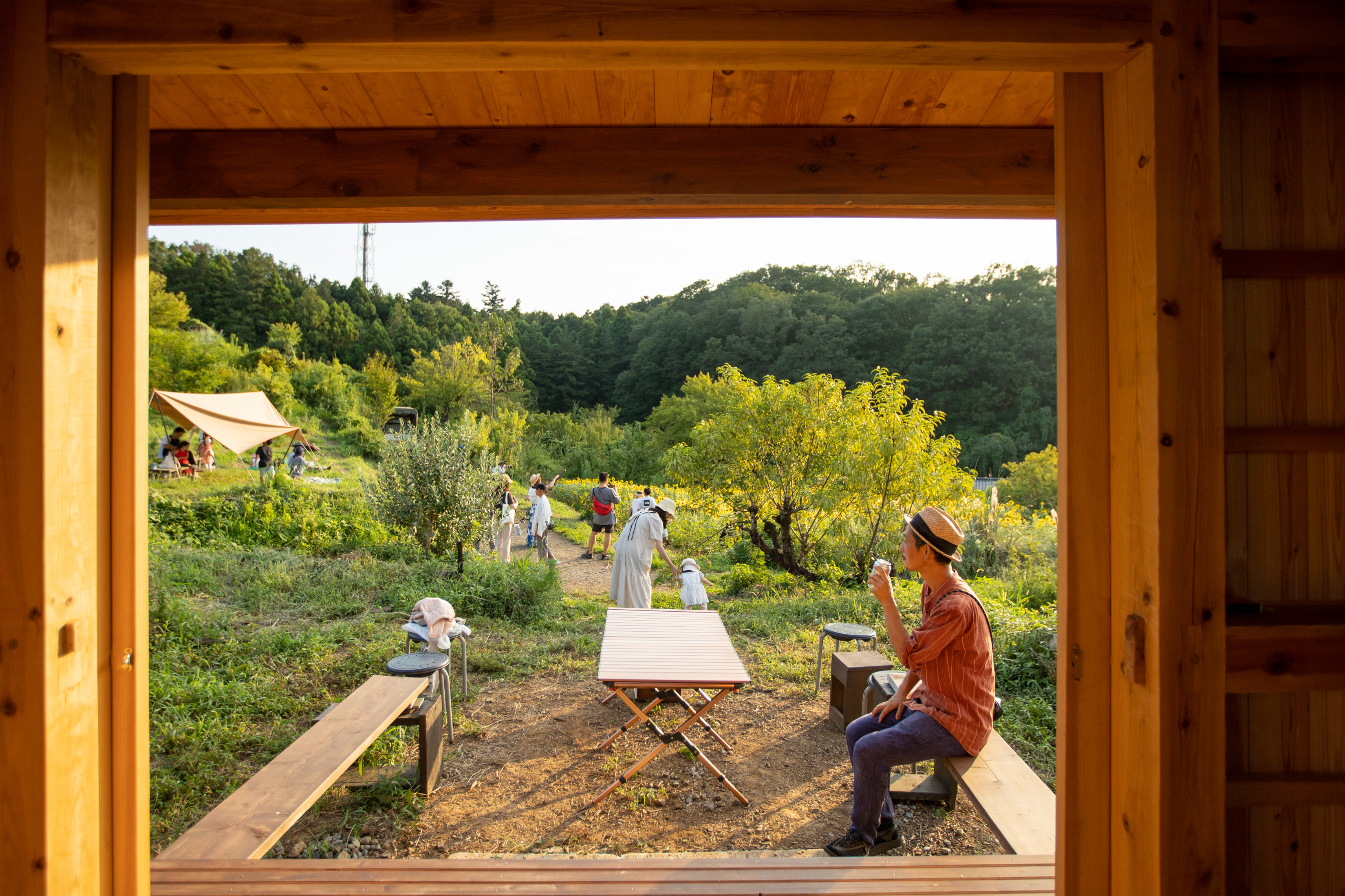 雨天、強風の場合などは、民家離れ土空の間を拠点に過ごします